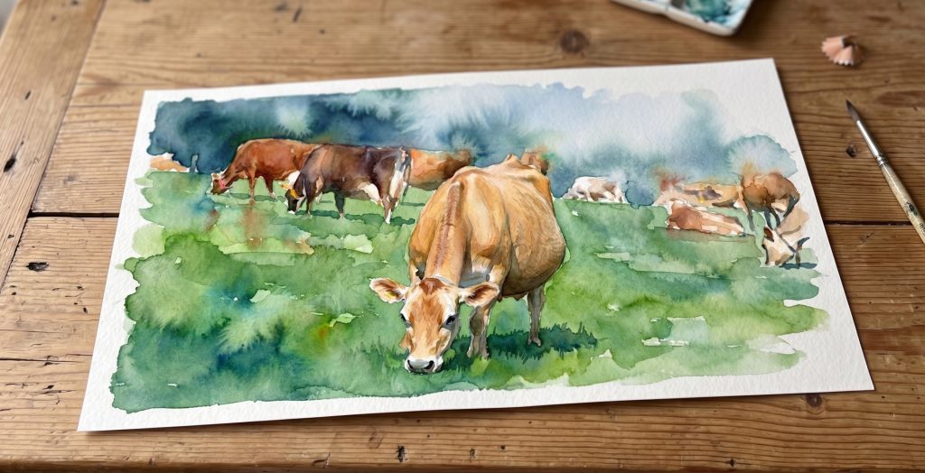 牛たちがゆっくりと草を食み、歩を進めるたび、遠くでかすかな足音が大地にやさしく響く。